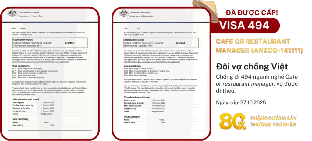 VISA 494Khách hàng: Gia đình chị M.T.T.T Cấp ngày: 27/10/2025